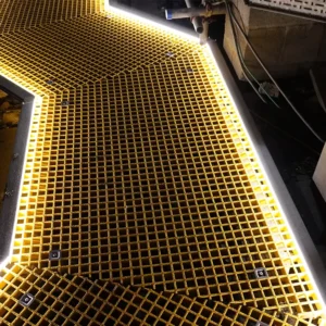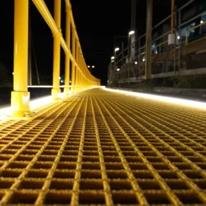 The grating is exclusive to Dura Composites and cannot be found anywhere else . It has been extensively anti-slip tested using methods far superior to those of other GRP grating suppliers, achieving anti-slip scores of more than 63 in the wet, maintaining low slip potential even after 1.1 million footfalls.